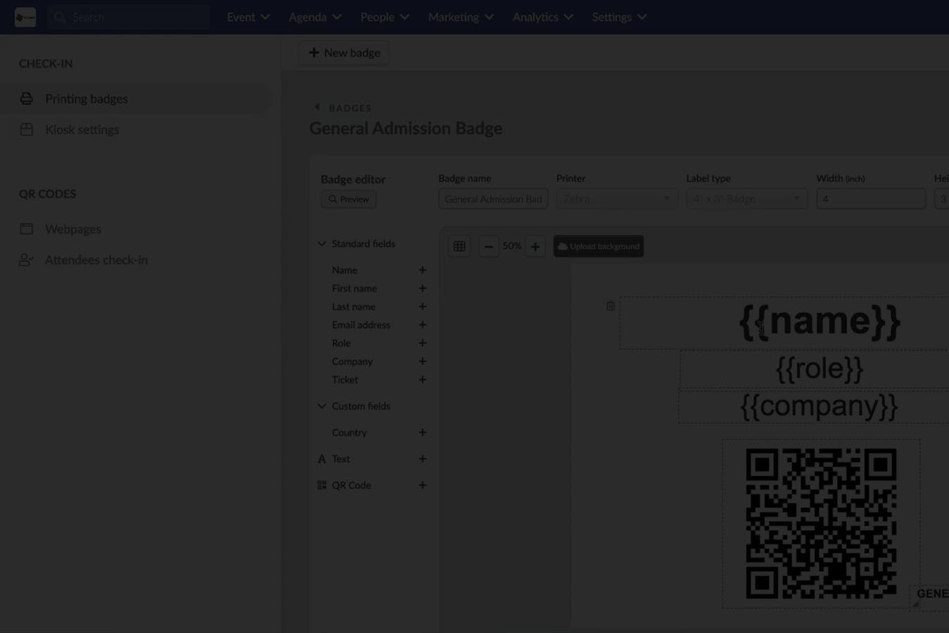 Because badge design is not treated as a standalone feature. InEvent connects badge layouts directly to: